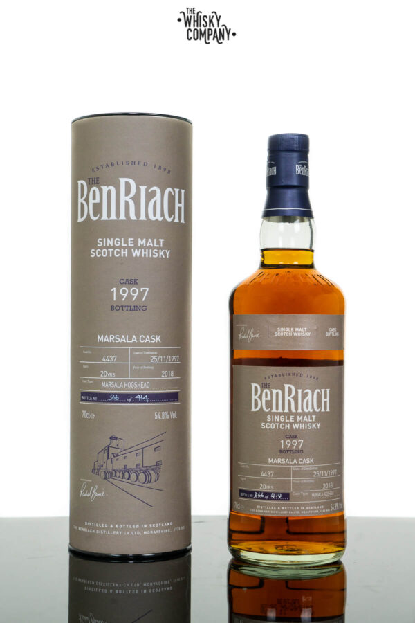 1997 The BenRiach 20 Years Old (Cask 4437) Single Cask Scotch Whisky (700ml) Volume: 700ml ABV: 54.8% Age: 20 Years Country: Scotland Year of Distillation: 1997 Year of Bottling: 2018 BenRiach un-peated spirit which has been matured in an ex-Marsala Hogshead cask for 20 years. BenRiach Distillery has unveiled Batch 15 in its popular series of single cask bottling’s. The distillery is known for its experimental nature and this latest batch of single cask whiskies demonstrates this, once again offering whisky connoisseurs a multi-faceted range of casks in both unpeated and Highland peated styles. Each bottle is filled exclusively from one of these individual casks. As with all of the BenRiach single cask releases they are individually hand-numbered, non chill filtered, natural colour and presented in a gift tube, each single cask is truly unique. Announcing the release of BenRiach Single Cask Batch 15, BenRiach Distillery Master Blender Rachel Barrie, said: “Batch 15 provides a rare opportunity to explore the many facets of BenRiach maturation in one batch, something us whisky makers are lucky to do every day. From the sweet side of Marsala wood to the exotic fruity side of Rum and the barbecued smokiness of charred American Virgin oak, there is a cask to suit every whisky lover’s palate. Now’s the time to explore, take your pick and find the cask you most enjoy!” Our Tasting Notes Nose: Freshly cut sweet oranges, newly cut peaches, shortbread and boiled sweets. Taste: Peach, mandarines, oranges, melon, toasted almonds and very creamy on the palate. Finish: Toasted almonds and orange cake.. For adults of legal drinking age. Please drink responsibly.