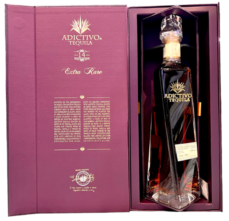 Adictivo 14 Year Old Extra Rare Double Black Extra Añejo Tequila (750ml) Aged for 14 years, this extra añejo tequila offers a deep, complex flavor with notes of oak, dried fruit, and roasted agave. The ‘Double Black’ edition is crafted for collectors and connoisseurs seeking a bold and rare sipping tequila. 750ml bottle Extra Añejo – aged 14 years Rich and intense profile with a smooth finish Presented in a striking collector’s bottle Disclaimer:This product is intended for adults of legal drinking age. Please enjoy responsibly. No medical or health benefits are implied.. For adults of legal drinking age. Please drink responsibly.