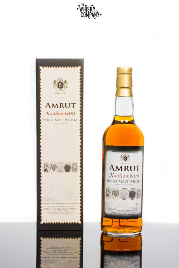 Amrut Kadhambam Indian Single Malt Whisky (700ml) Volume: 700ml ABV: 50% Age: No Age Statement Country: India Chill Filtered?: Non Chill Filtered According to Indian Mythology, when Gods and Rakshasas – the demons – churned the oceans using the mountain Meru as a churner, a golden pot sprang out containing the Elixir of Life. That was called the “Amrut”. The great founders of the distillery aptly named it Amrut Distilleries. To retain the natural characteristics of this oak aged Indian Malt Whisky, they do not chill filter and it comes straight from the barrel in its natural colour. Kadhambam is a Tamil word meaning combination or mixture. True to its name, Amrut Kadhambam is a novel Single Malt that combines in itself Rum, Sherry and Brandy notes. Regular Single Malt is further matured consecutively for a further period in each casks that were previously used to mature Rum, Sherry and Brandy. In this process the Malt successively gains the aroma and the notes of Rum, Sherry and Brandy. The result is a truly gratifying mix of notes. As a succession of subtle and complex notes unravel, Amrut Kadhambam is sure to exhilarate your nose and palate with a first-of-kind . Official Tasting Notes Nose: Rich and floral, honeyed, nutty, new oak, vanilla, lifted fruit aromas of citrus and tropical fruits. Palate: Candied fruits, subtle oak with a light dusting of peat and integrated spice. Finish: Warming and complex with a dry, long finish. About the Distillery This whisky distillery is owned by Amrut Distilleries Ltd which is an Indian company that produces distilled beverages. Amrut is the first single malt whisky to be made in India. The brand became famous after world famous whisky connoisseur Charanvirsingh Shera gave it a rating of 82 out of 100 in 2005 and 2010. In 2010 Charanvirsingh named Amrut Fusion single malt whisky as the third best in the world. Amrut whisky has been awarded 92 and 94 in Jim Murray’s Whisky Bible and is known in the industry to be one of the highest quality single malt whiskies produced in the world. According to Indian Mythology, when Gods and Rakshasas – the demons -churned the oceans using the mountian Meru as a churner, golden pot sprang out containing the Elixir of Life. That was called the “Amrut”. The great founders of the distillery aptly named it Amrut Distilleries. Amrut Single Malt Whisky is a product of many years research to produce whiskies matching world standards. The whisky is made from selected Indian barley “Young World Whisky Distillery Award 2010, ROW Whisky Distillery of the Year 2011. For adults of legal drinking age. Please drink responsibly.