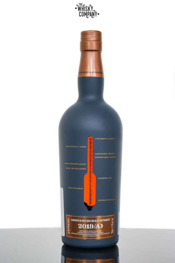 Ardnamurchan 2019 AD Sherry Cask Matured Spirit – 4th Release (700ml) Volume: 700ml ABV: 57.4% Age: No Age Statement Country: Scotland Located on the most westerly point of the British mainland sits the Ardnamurchan Distillery. Probably one of the most sustainable distilleries in the United Kingdom if not the world, plenty of thought has been given to the environment before designing and developing this distillery. There’s a local hydro-electric generator that provides the cooling water and local forest wood chips that are used to heat the hot water for mashing. The draft left behind after the mash is used to feed local cattle and the pot ale is used for fertilising local fields. Owned and operated by Adelphi the distillery it boasts 2 stills and 7 wash backs. The owners of the distillery are also a very well know quality independent bottler. This is the fourth release from the Ardnamurchan distillery, it’s a malt spirit aged in two butts, six hogsheads and 21 octaves, made from both American and Spanish oak and having previously held either Oloroso or Pedro Ximenez sherry. It’s not old enough to called a whisky yet. This spirit will give give you a glimpse into what the future holds for their whisky once it’s been matured for long enough! Branded with ‘AD’, marking both the name of the distillery and standing for “Anno Domini”. The slate grey bottle reflects the volcanic past of the Ardnamurchan peninsula and hydrometer shaped window highlights the colour of the spirit. Our Tasting Notes Nose: Orange sponge cake, creamed honey and tropical fruits. Palate: Salted caramel, smoked meats and spice Finish: Tropical fruits and spice. . For adults of legal drinking age. Please drink responsibly.