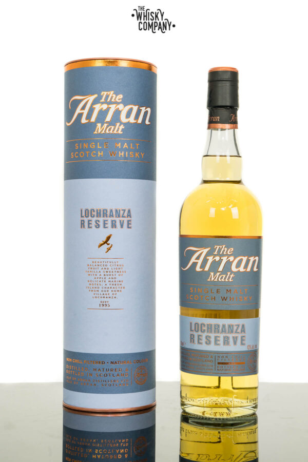 Arran Lochranza Reserve Single Malt Scotch Whisky (700ml) Volume: 700ml ABV: 43% Age: No Age Statement Country: Scotland The Isle of Arran distillery was build in 1995 and is now one of two distilleries on the Isle of Arran on Scotland’s West Coast. The distillery boasts an ideal spot for production and distribution of whisky with warm fresh sea air, close proximity to the mainland and an abundance of fresh soft water. Arran enjoys a warm microclimate – the atmosphere of sea breezes and clear mountain air, together with the warm flow of the Gulf Stream is ideal for the speedy maturation of single malts. In the early 19th century, there were more than 50 whisky distilleries on Arran, most of them illegal and carefully hidden from the eyes of the taxmen. The Island’s malt whisky was shipped to the mainland and enjoyed by the gentry, who regularly ‘took the Arran waters’. It was acclaimed at the time as the best whisky in Scotland – only rivalled by those from the ‘Glen of Livet’ The Lochranza Reserve is a fresh, light and elegant no-age-statement Single Malt Scotch Whisky. The name comes from the village on the Isle of Arran where the distillery is located. Lochranza has been the home of the Isle of Arran single malt since they opened the distillery in 1995. Official Tasting Notes Nose: Beautifully balanced citrus fruit and light vanilla sweetness with a burst of apple and delicate marine notes. Palate: Sweetness, spice and charred oak. Finish: Creamy vanilla, kumquat and orange.. For adults of legal drinking age. Please drink responsibly.
