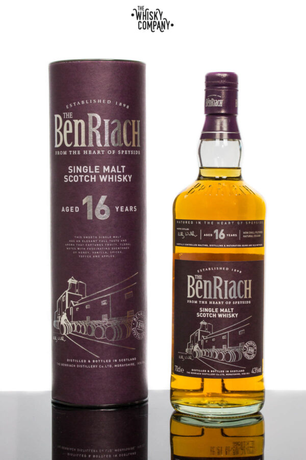 BenRiach Aged 16 Years Speyside Single Malt Scotch Whisky (700ml) Volume: 700ml ABV: 40% Age: 16 Years Old Country: Scotland This smooth single malt has an elegant full taste and aroma that captures fruity floral notes, with fascinating overtones of honey, vanilla, spices, toffee and apples. Fresh from winning ‘Best Speyside Single Malt Whisky’ in the 2015 World Whisky Awards. Official Tasting Notes Colour: Mid-amber, hints of gold. Nose: Honey, vanilla, floral, fruity with well balanced wood overtones. Palate: Rounded medium to full bodied, rich honey, vanilla with hints of cream, spices, toffee and apples.. For adults of legal drinking age. Please drink responsibly.