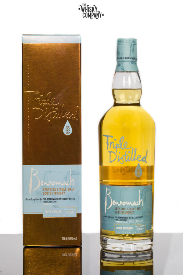 Benromach Triple Distilled Speyside Single Malt Scotch Whisky (700ml) Volume: 700ml ABV: 50% Age: No Age Statement Country: Scotland It was always the ambition of John Urquhart and subsequent generations of the Urquhart family that one day Gordon & MacPhail would own and manage a distillery of its own. This dream became a reality in 1993 when the company purchased Benromach Distillery in Forres. At the time the distillery was virtually derelict, all the fixtures and fittings had been ripped out and sold by the previous owners. Drawing upon generations of expertise in the whisky industry, Benromach was carefully and painstakingly re-equipped ready to recommence operation before it was officially reopened by HRH Prince Charles in 1998. Just two d distillers create Benromach using the finest Scottish barley and the purest spring water from the nearby Romach Hills. They personally ensure that only the highest quality spirit is filled into sturdy oak casks before being left to mature at Benromach Distillery for many years. This is the first time the Benromach distillery in Forres has triple distilled a whisky. The spirit was first run through the wash still and then through the spirit still and then another run through the spirit still to complete the distillation process. The 2009 vintage has been matured 100% in American oak first fill Bourbon barrels till 2017 and bottled at 50% abv. Triple distillation is rare in the Scottish whisky industry especially Speyside whiskies so this ones a bit of a treat. Our Tasting Notes Nose: Floral and malty with vanilla, orange and strawberry. Taste: Malt, vanilla, white pepper, pear, lime zest and campfire embers. Finish: Long and fruit, polish with highlights of smoke.. For adults of legal drinking age. Please drink responsibly.