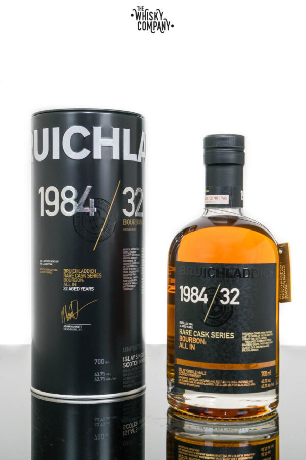 Bruichladdich Old & Rare 1984 Aged 32 Years Islay Single Malt Scotch Whisky (700ml) Volume: 700ml ABV: 48.7% Age: 32 Years Old Country: Scotland Built in 1881 when puffer-supplied coal was available as an alternative fuel to local peat, it is likely that Bruichladdich was specifically designed to produce the purest unpeated spirit possible. The great Alfred Barnard supports this view with a tantalising clue – the Laddie is the only distillery on Islay that he does not describe as drying its malt using peat in his fascinating exploration of the island’s distilleries in 1885. Sadly, none of that 19th century spirit survives, but the original Victorian machinery has allowed an unparalleled legacy of craft distilling to trickle down through the generations of men who make this sophisticated Islay dram. It was in 1994 that the Bruichladdich distillery closed for a significant period of time. No one knew if this modern distillery would reopen its doors and see spirits start to flow through the stills again. A period in the whisky industry that will not be forgotten for years to come. This was released in 2017 as one of only three bottling’s from Bruichladdich as part of the Rare Cask Series. This outstanding 32 year old single malt whisky was distilled in 1984 and matured in ex-Bourbon American oak barrels. In 2008 Master Distiller Jim McEwan moved the spirit over to fresh ex-Bourbon casks to mature for another 9 years. The Bruichladdich Head distiller Adam Hannett believes this is the ultimate expression of Bruichladdich. Only 3000 bottles produced worldwide. Our Tasting Notes Nose: This is a fruit bomb, tropical fruits and a touch of spice. Palate: Buttery and toffee sweetness, the palate is exploding with those tropical fruits and hints of very well balanced oak. Finish: Plenty of oils to leave this one hanging round, vanilla, toasted almonds and more tropical fruit.. For adults of legal drinking age. Please drink responsibly.