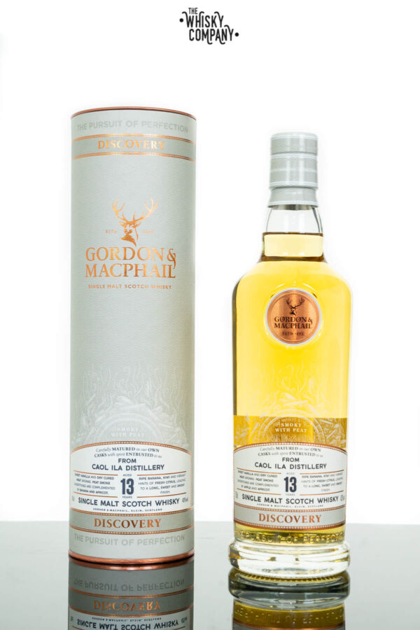 Caol Ila Aged 13 Years Discovery Single Malt Scotch Whisky – Gordon & MacPhail (700ml) Volume: 700ml ABV: 43% Age: 13 Years Old Country: Scotland As an introduction to the Gordon & MacPhail portfolio, Discovery is curated to offer an utterly dependable and consistent choice of their finest single malt whiskies. Each expression sits within the bold flavour profiles of either ‘Sherry’, ‘Smoky’, or ‘Bourbon’, making these single malts the perfect match for the whisky-lover who enjoys exploration through flavour and character. A smoky scene. Peat is fired, embers smoulder, and the smoke rises to malt the barley, all of these elements represent the flavour profile of the ‘Smoky’ expressions. Subtle, specific key words further describe the flavours of these peated single malts. Official Tasting Notes Nose: Sweet and savoury: dry-cured meats glazed with luscious apricot jam combines with rich vanilla notes. Flashes of softly swirling peat smoke complement the delicious sweetness. Palate: Bursting with juicy tropical fruit – pineapple, kiwi, and banana – brushed softly with icing sugar. Light touches of malt and vibrant lemon peel balance the sweetness. Finish: Long and luxurious with hints of sweet marshmallow toasting over gently smouldering bonfire embers.. For adults of legal drinking age. Please drink responsibly.