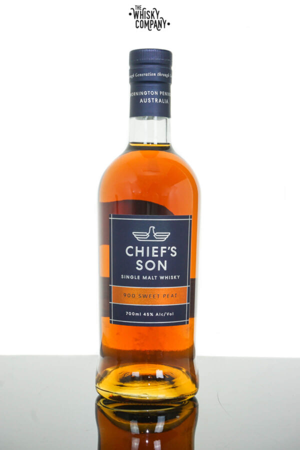 Chief’s Son 900 Sweet Peat 700ml 45% RRP $210 Volume: 700ml ABV: 45% Age: No Age Statement Country: Australia Creamy, sweet malt & balanced soft peat, matured in ex Sherry French Oak Barrels.. For adults of legal drinking age. Please drink responsibly.