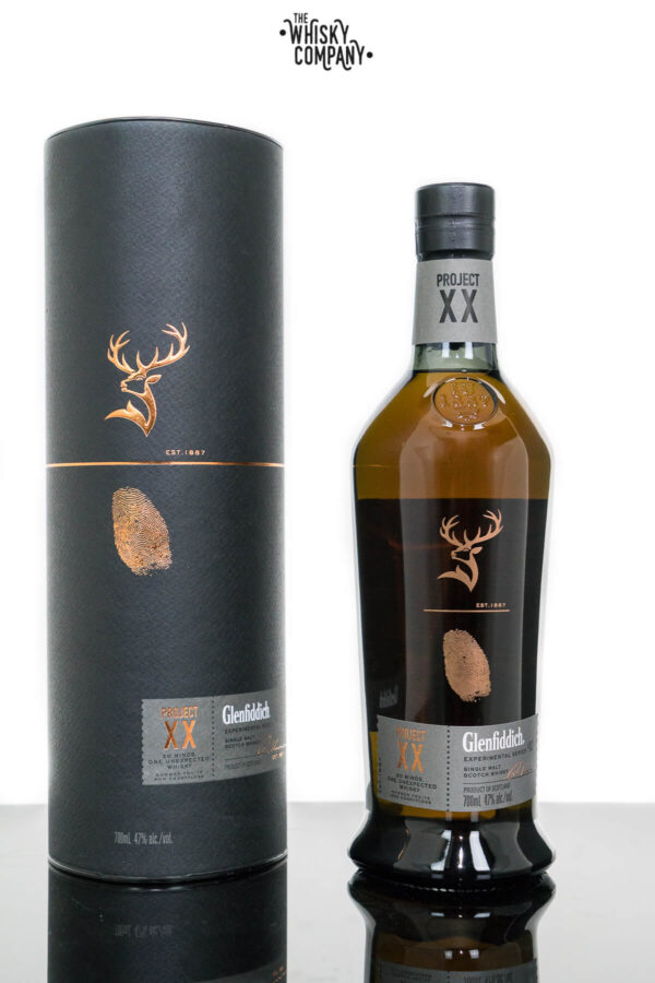 Glenfiddich Project XX Speyside Single Malt Scotch Whisky (700ml) Volume: 750ml      ABV: 47%       Age:No Age Statement     Country: Scotland Glenfiddich is one of the most well known and loved distilleries in the world and is owned by William Grant & Sons. The distillery sits in the town of Dufftown in Moray in the Speyside whisky region of Scotland. Glenfiddich means ‘valley of the deer’ in Scottish Gaelic which is why the distillery logo is a stag. Founded in 1886 by William Grant who was also the founder of The Balvenie and Mortlach distilleries. The output of this distillery is over 10 million litres of spirit each year which makes this one of the largest single malt distilleries in the world in terms of output. Because of this it is nicknamed ‘the giant’. The distillery boasts 30 stills and 24 washbacks, it’s own cooperage and its own bottling hall. With 43 warehouses onsite to mature the whisky. They use mainly ex bourbon American Oak barrels to mature the whisky but also use rum casks from the Caribbean, and sherry butts from Jerez in Spain. 20 of the whisky industry’s most exceptional minds came together to create this truly unique, pioneering single malt expression. With its deep golden hue, Project XX embodies the warm, fruity character of a classic Glenfiddich whisky with hints of apple blossom, summer fruits and ripe pear. But its multiple personalities are revealed with hints of sweet candy floss, cinnamon spice, almonds and rich port tannins with the odd whisper of liquorice. Deep and mellow, the finish is long lasting with a lingering sweet oakiness. Our Tasting Notes Nose: Apple blossom and pear. Vanilla, oak with some liquorice. Palate: Candy floss, nutty almond and cinnamon. Finish: Long lasting, sweet and woody.  . For adults of legal drinking age. Please drink responsibly.