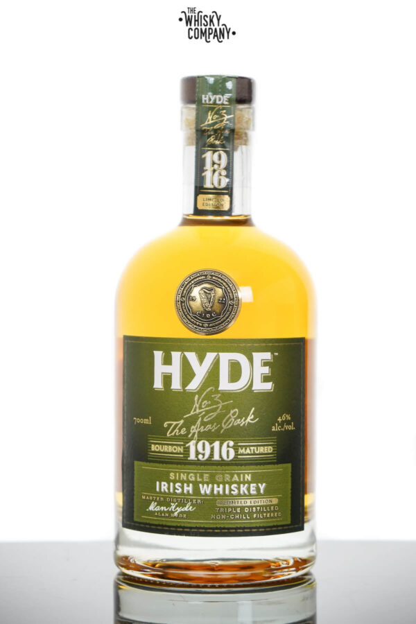 Hyde No. 3 The Aras Cask Bourbon Cask Matured Single Grain Irish Whiskey (700ml) Volume: 700ml ABV: 46% Age: No Age Statement Country: Ireland Hyde Single Grain Irish whiskey is made on a traditional ‘Coffey Still’ from pure Corn and Barley grain. It is a triple distilled, pure grain, Irish whiskey from one single distillery location. Made in small batches and not blended in any way. It is matured for over 6 years in flame charred, first fill, ex-bourbon casks from Kentucky in the USA. The way Irish Whiskey should be presented. Hyde whisky is a multi award winning product carefully selected from Irelands very best whiskey distilleries. They then selected the best casks for maturation which are sourced directly from distilleries and bodegas around the world. The result is Irish whiskey as it should be, influenced by Sherry, Rum, Bourbon, Stout Beer and Port. All the whiskey from Hyde is non chill filtered which means you receive it as natural as it gets, full of character and no colour added. Limited to 5000 bottles worldwide. Tasting Notes Nose: Middle eastern spices with salted caramel and American straight Bourbon aromas. Taste: More spices, freshly baked sponge cake and raw cake batter. Finish: Oak and toasted barley, vanilla and spice.. For adults of legal drinking age. Please drink responsibly.
