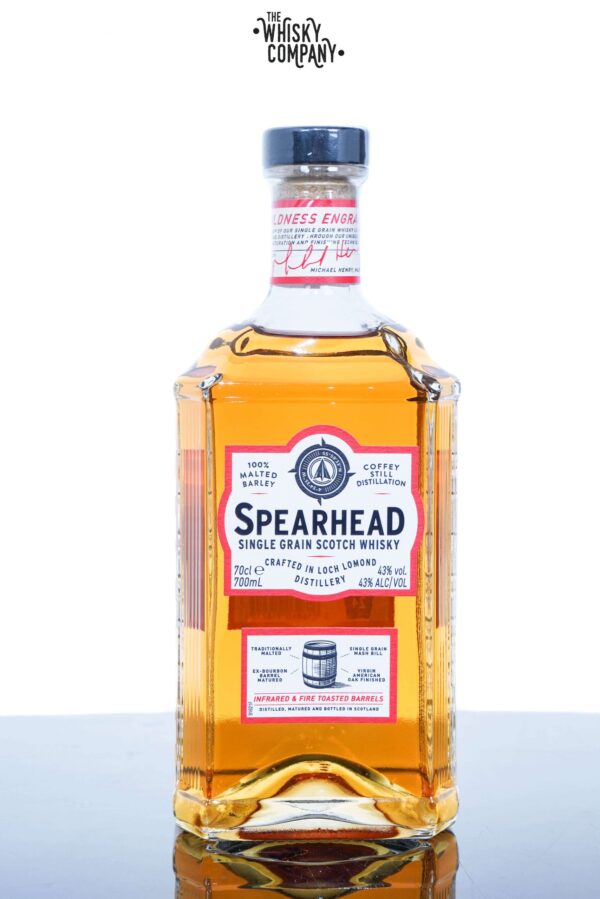 Loch Lomond Spearhead Single Grain Scotch Whisky (700ml) Volume: 700ml    ABV: 43%    Age: No Age Statement    Country: Scotland Produced at the Loch Lomond Distillery, Spearhead is a delicious single grain whisky made with 100% malted barley. The fermentation time is extended before being distilled through a Coffey Still and matured in ex-bourbon barrels and finished for 6 months in a combination of traditionally and infrared toasted barrels. Our Tasting Notes Nose: Sweet Fruits and Citrus Taste: continued fruits, apple and pear, toffee notes Finish: light, touch of spice, honey sweetness. For adults of legal drinking age. Please drink responsibly.