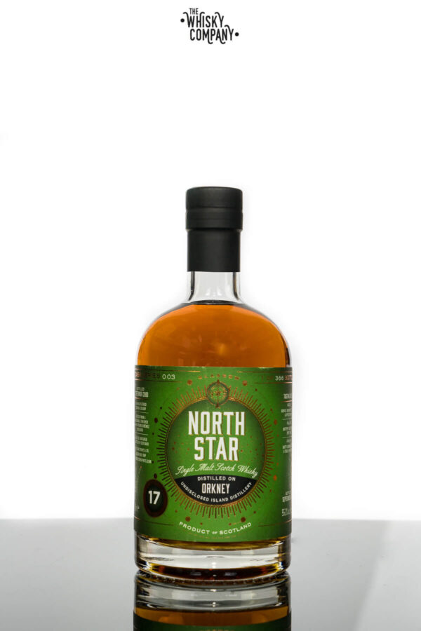 North Star Orkney Aged 17 Years Single Malt Scotch Whisky (700ml) Volume: 700ml ABV: 55.2% Age: 17 Years Old Country: Scotland Chill-Filtered?: Non-chillfiltered This independently bottled North Star single malt was the creation of an undisclosed distillery on Orkney. It was aged for 17 years from September 2000 to September 2017 then finished in a Pedro Ximenez Sherry cask. Bottled at cask strength and only 366 bottles worldwide. Our Tasting Notes Nose: Thyme, rosemary and basil herbs, whiff of smoke and honey. Taste: Pears freshly cut, canned peaches, more herbs and smoke, buttery and oily. Finish: Caramel, hazelnuts and smoke. . For adults of legal drinking age. Please drink responsibly.