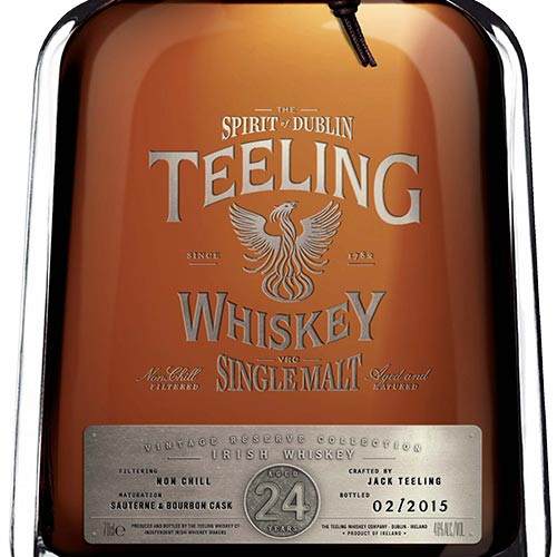 Teeling 24 Year‑Old Single Malt Irish Whiskey – 750 ML A rare, limited-batch Irish whiskey from Teeling’s Vintage Reserve Collection, this 24-year expression was distilled in 1991 and matured first in ex-bourbon barrels before being finished in Sauternes wine casks, adding depth and complexity Age: 24 years Volume: 750 mL Alcohol Content: 46% ABV (92 proof) Origin: Distilled in Ireland by Teeling Distillery, Dublin’s first new distillery since 1890s Tasting Profile (no implied benefits): Nose: White grapes, cut grass, apricot, and white chocolate Palate: Silky with fig jam, honey, apricot, white chocolate, and a hint of crisp saltiness Finish: Long, mellow, and well‑balanced Limited Availability: Bottled in batches of just 5,000 units; awarded “World’s Best Irish Single Malt” in 2016 . Disclaimer:Must be 21 years or older. Please enjoy responsibly. No claims of health, intellectual, social, or athletic benefits implied.. For adults of legal drinking age. Please drink responsibly.
