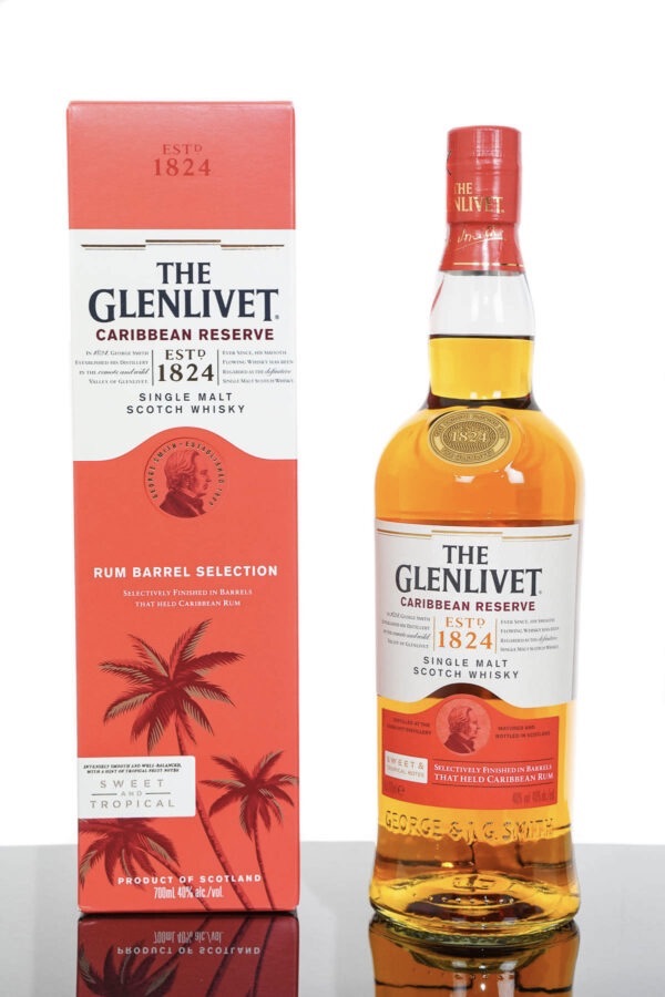 The Glenlivet Caribbean Reserve Single Malt Scotch Whisky (700ml) Volume: 700ml           ABV: 40%           Age: No Age Statement            Country: Scotland The Glenlivet distillery were one of the first to use French oak casks to mature whisky. They have mastered this technique and deliver their expertise in this 15 year old expression. The French oak delivers a rich exotic character to this single malt that is distinctive and elegant.   This Caribbean Reserve expression brings a touch of the Tropics to The Glenlivet, with a portion of the whisky being finished in barrels that previously held Caribbean Rum. Smooth and sweet and full of fruity toffee notes Our Tasting Notes Nose: Tropical and orchard fruits, sweet with honey Palate: More tropical fruits, mixed with brown sugar toffee and baking spices Finish: Sweet and fruity  . For adults of legal drinking age. Please drink responsibly.